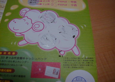 年始の初詣などに出掛ける予定なので「おけいはん2dayフリーきっぷ1,500円」を購入。 京阪全線と男山ケーブルを利用できる。「初詣朱印帳」が付いてくる。 ってよりも、「おみくじスクラッチカード」である。大吉は1,500円のキャッシュバック。しかし、我が家は2人とも小吉だったので「おけいはんシール」です。 |