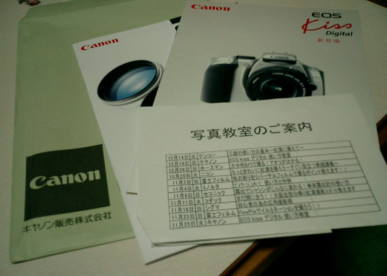この日は「EOS kiss デジタル」の使い方でした。 基本的なことを中心に、取説を読まない私にはありがたい、色々な使い方を説明してくれた・・・。 まだまだ、使用していない機能が多く、非常に奥が深い・・・。とにかく多く撮り経験を積まなくては・・・。と思いました。 この講義は2時間1,000円で事前申し込み。ヨドバシの2回にパンフレットがおいてあります。いろんな写真教室があるようです。 |