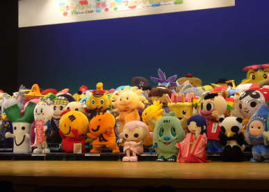 今回は3日間だし、見たいものもあるので、今回は泊まりにしました。 まず、1日目(23日) は「オープニングセレモニー」 ステージにゆるキャラが集まる・・・。 こんだけいると、凄い!! ただ、後ろのほうが見えません!! |