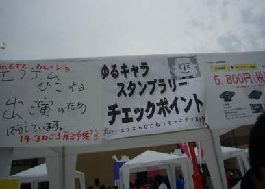 「ゆるキャラまつり」の会場に移動。 今回は会場も広がったはずなのに、結構な人だし、その上、ひこにゃんは前回のように、頻繁に登場しません・・・。 どうやって登場するのだろうか?どうも、会場では2回の予定になっている・・・が・・・。 |