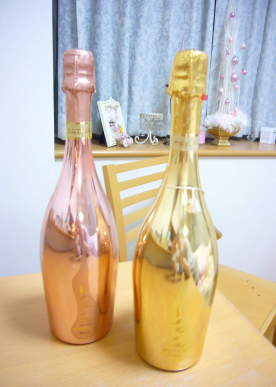 それのゴールドを阪急百貨店で見つけたのでピンクも合わせて予約しました。 VINO DEI POETI SPUMANTE PINK GOLDはなかなか入手困難って聞いたので・・・。 で、友達に話したら・・・ 「今日近所のお店で見たから買ったよ!同じのだよね!」って・・・。 う〜ショック・・・。 待った時間は何だったのか・・・今はエノテカのネットショップでも入手可能です。 |